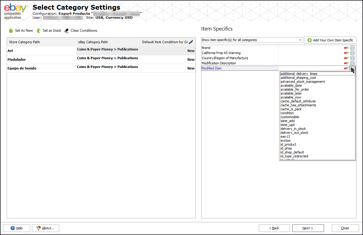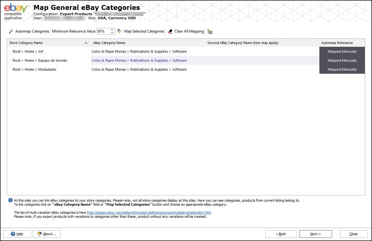 - Automatically map categories from Store Manager to eBay ones. If you need to change category associations re-assign them manually.
