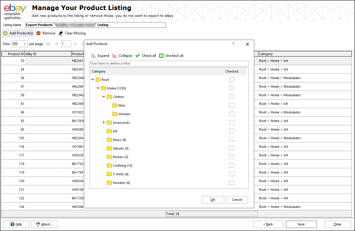 - Select products to be exported to eBay from Store Manager products list.