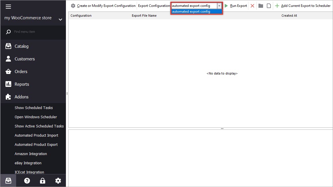 Navigate to Addons section of the application and select Automated Product Export tool. To add new configuration, press the corresponding button in the menu.