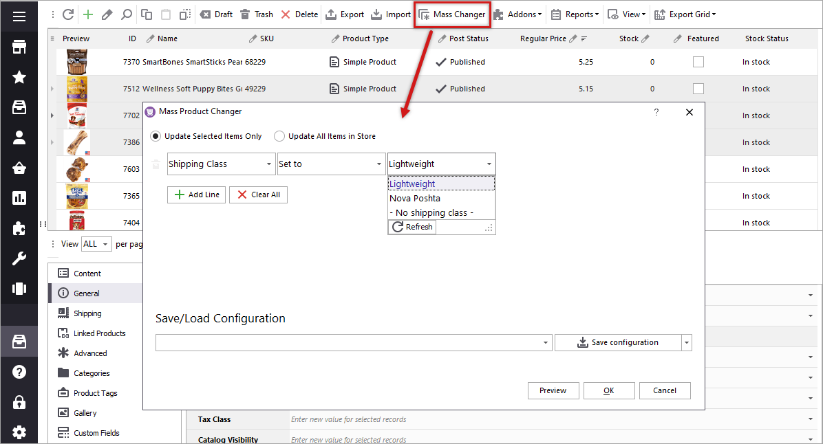 When it comes to assigning shipping class to WooCommerce products you would like to fulfill it in the most convenient way. Store Manager for WooCommerce allows you to bulk assign/change shipping class for multiple selected product with Mass Product Changer or via import.