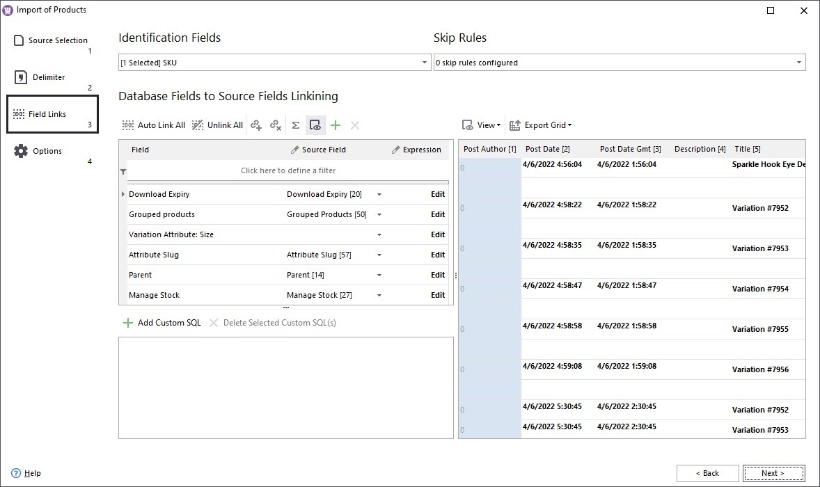 We’ve tried to import a CSV file using Store Manager for WooCommerce application. As you can see, the CSV file was accepted, and the import proceeded to the mapping step: