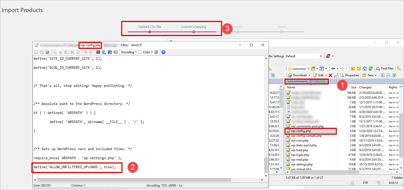 Add a line of code in the WooCommerce wp-config file to allow unfiltered uploads