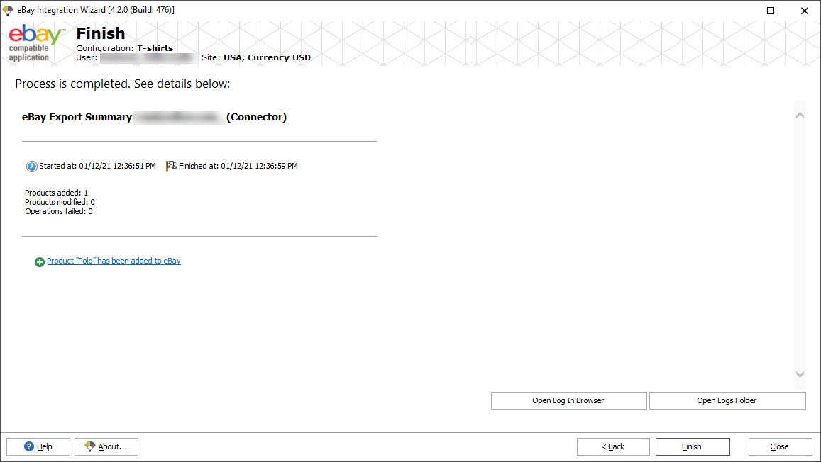 Here you can see the result of the export. If any errors occurred, you’ll see the details and will be able to check the log files
