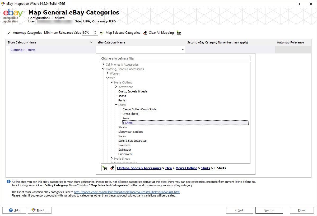 Next you should map your store categories to the corresponding eBay categories. You can do this either manually or rely on automapping: