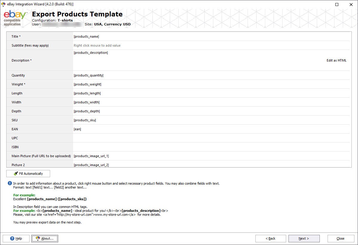This is the final step in the export wizard. Look through the product data that will be published to eBay. As you can see, there are several tabs there: