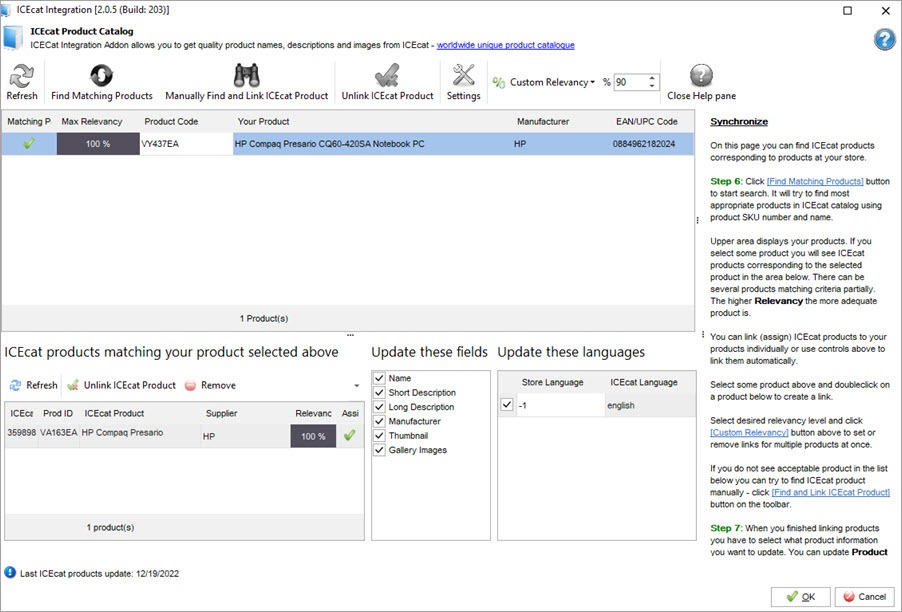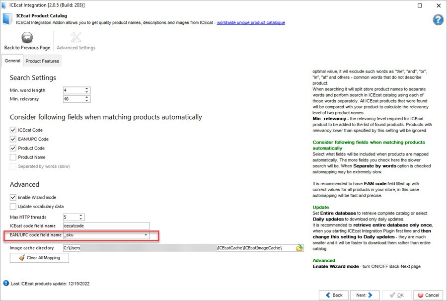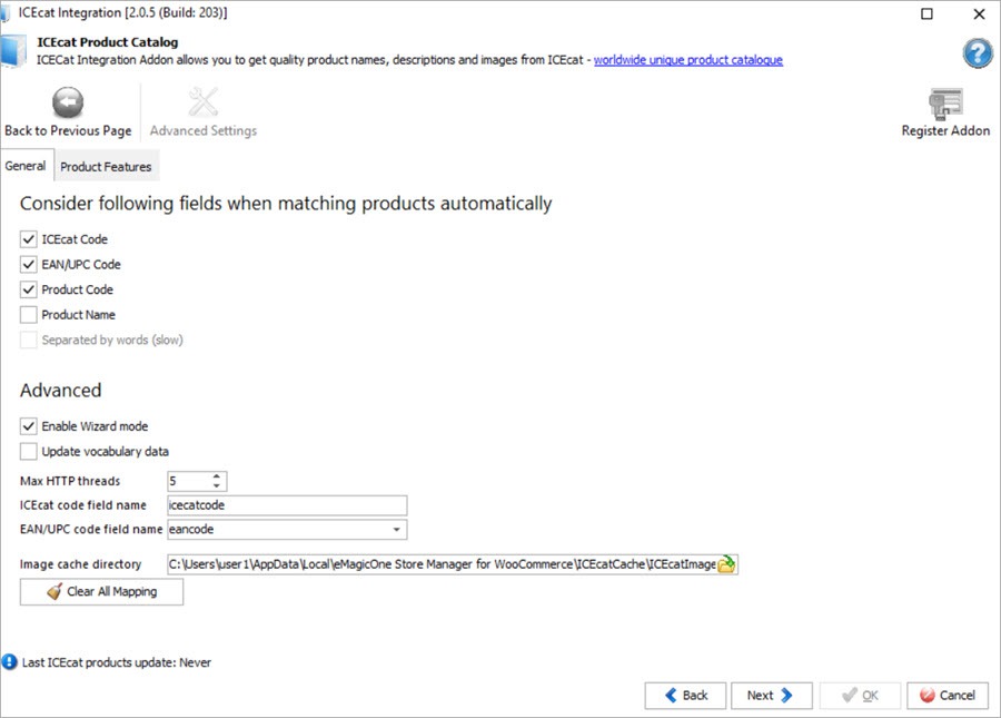 Important Be sure to map the fields between your store database and ICEcat properly. This will let the addown find matching products.