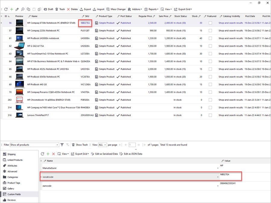 Example 3.The identifier is EAN code and it’s stored in the SKU field: