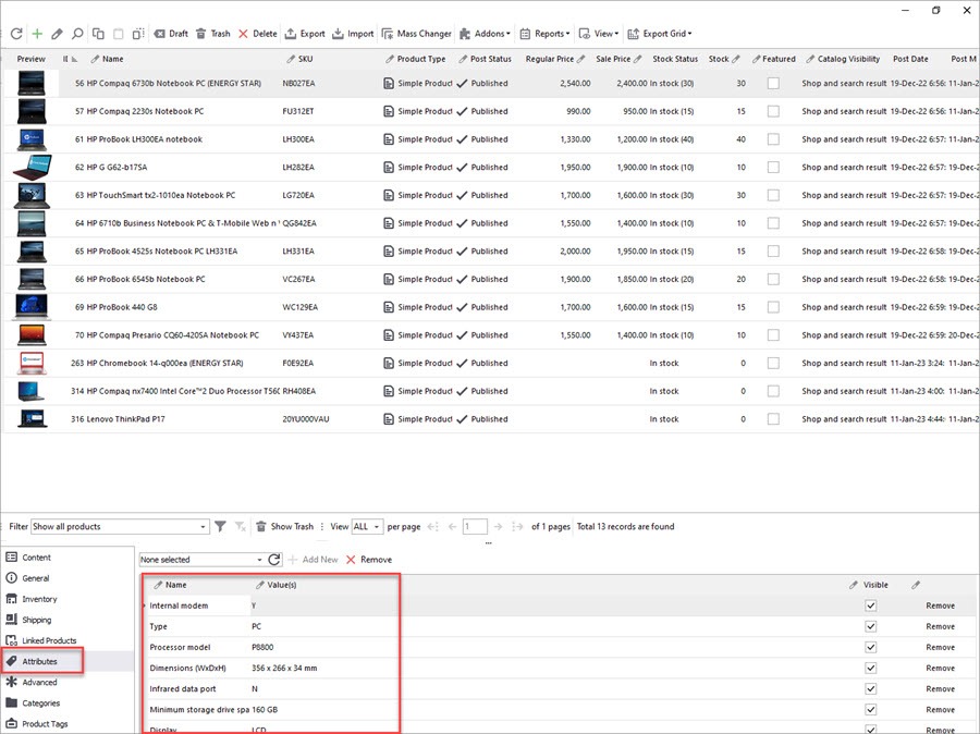 Example 2.EAN code is added as a custom attribute in WooCommerce: