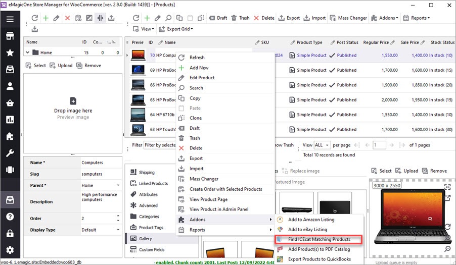 - Launch ICEcat Integration addon from within Store Manager for WooCommerce. In Store Manager, navigate to Catalog > Products. Select the products you want to import ICEcat content for. Call the context menu with a right-click and select Addons > Find ICEcat Matching Products.