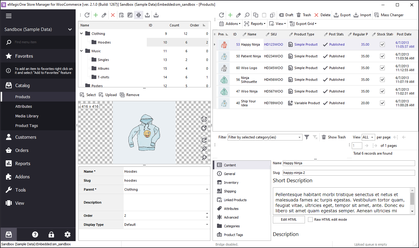 Using Store Manager for WooCommerce you have the chance to work with your catalog in much more convenient way.