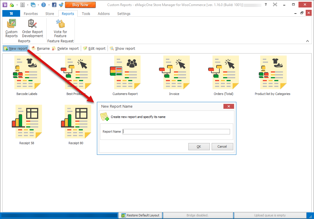 After pressing the appropriate button on the toolbar, proceed with filling in your future report’s name.