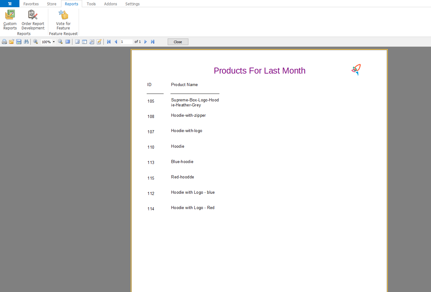 When you press the Preview button, you will see the result how the part of the report you have created looks like.