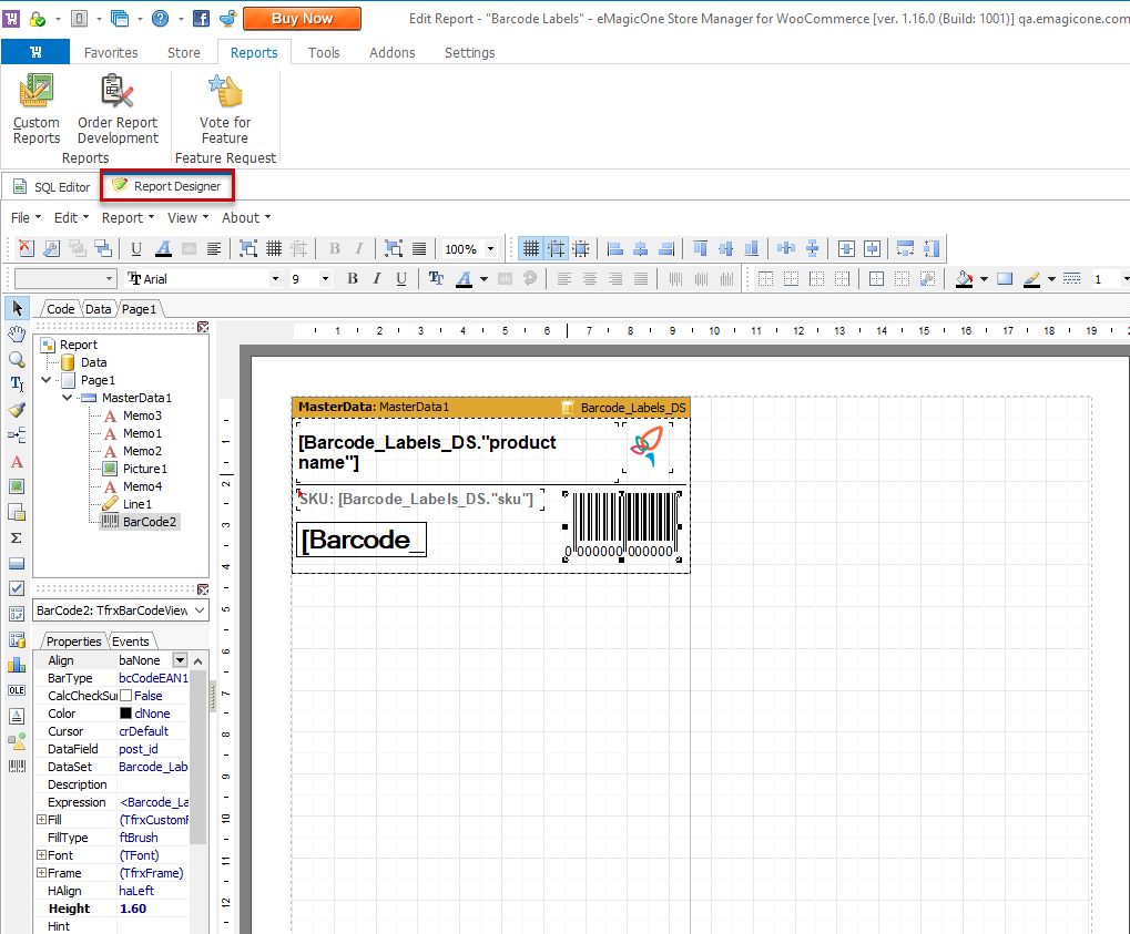 That’s it! You can check the result in the Report Designer tab, or hit Ctrl+P to preview the edited report. Onwards, you can save or print ready-made barcode labels.