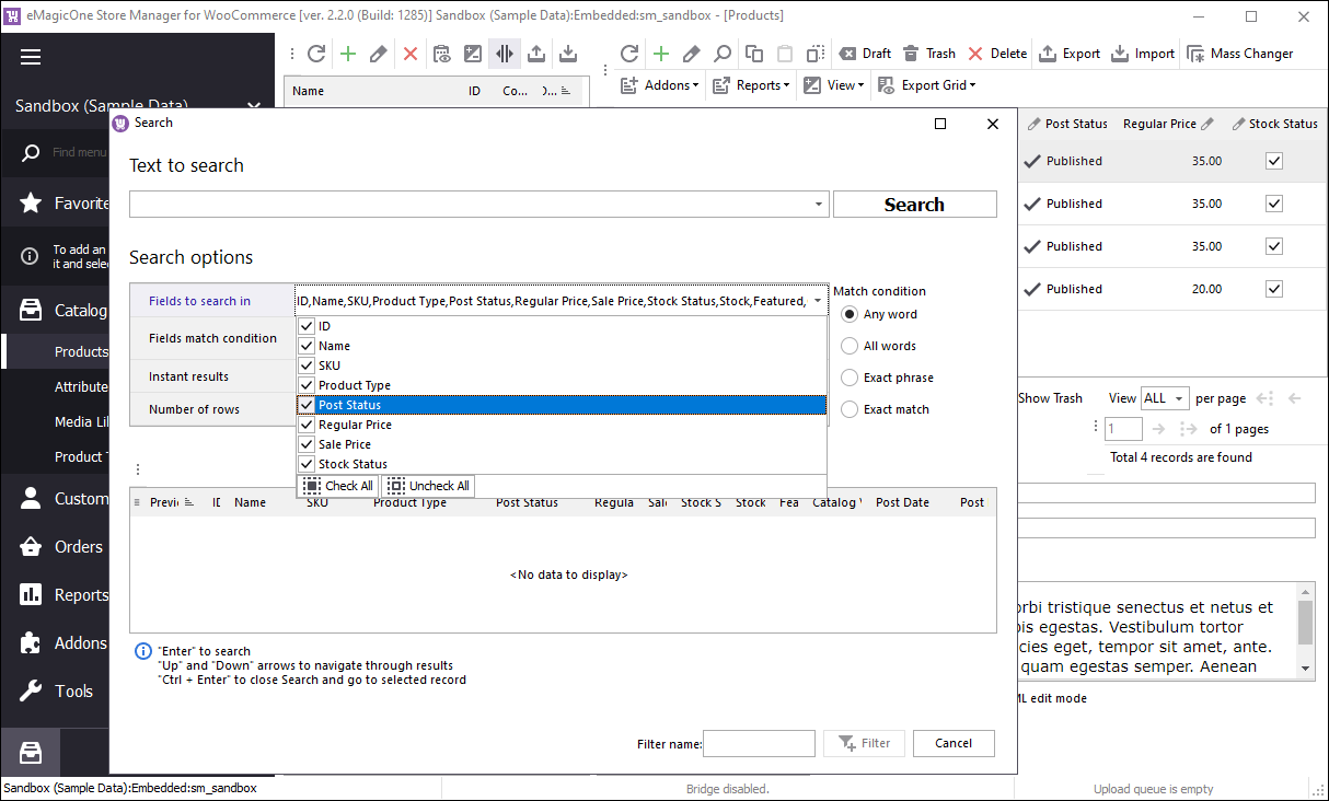 Here is an array of fundamental operations over WooCommerce products available in Store Manager and their detailed explanation: