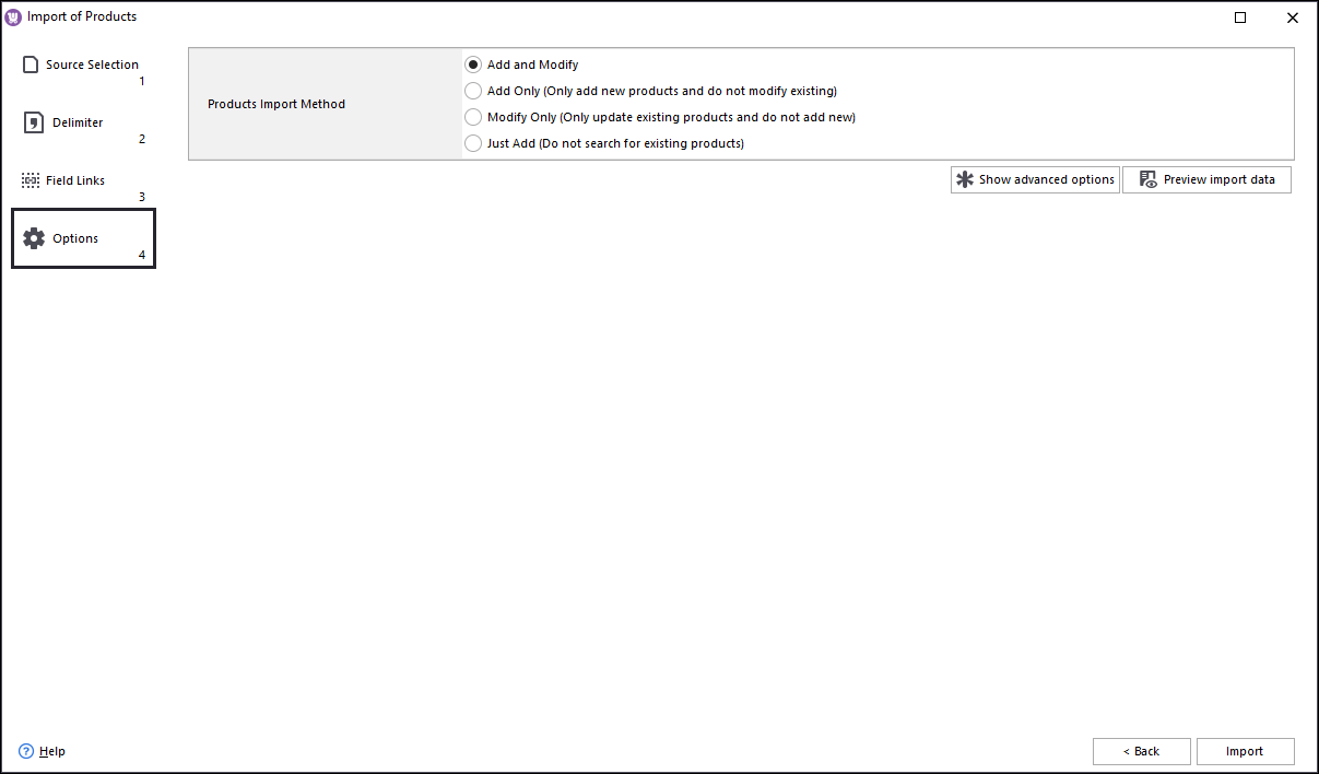 - Just Add - don't check if the imported products exist and import products from the file as new.