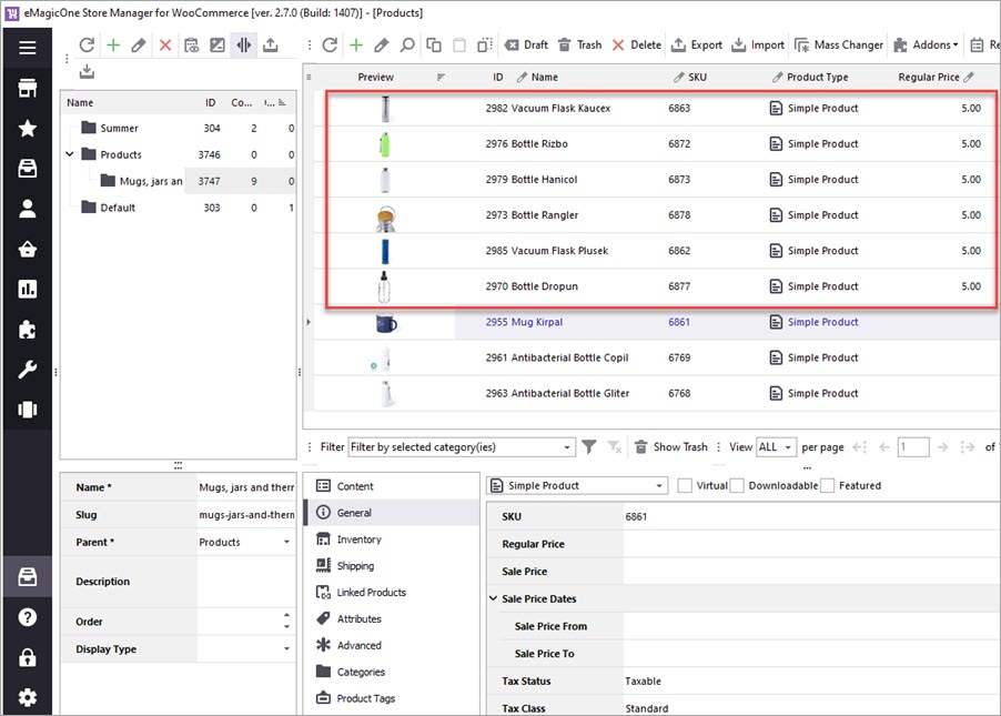 Preview data and confirm the procedure by pressing the "Import" button in the wizard. After the import has been completed, you will get import logs showing you the changes that have been implemented. Now you may close the wizard and check the products. Here is how they look in Store Manager: