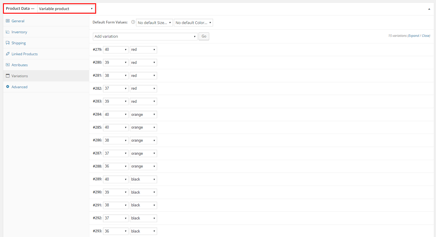 Variable is actually a single entry with multiple selections (variations) assigned. If one and the same product differs in some characteristics, you are not obliged to create separate entities and multiply product pages. All the options can be displayed within one product page if you create Variable product. Moreover, you can accurately fulfil control over stock, image, prices of WooCommerce variations.