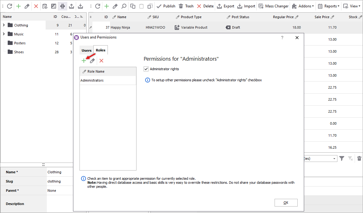 - Turn to Roles tab and click on the button to add new WooCommerce user role.
