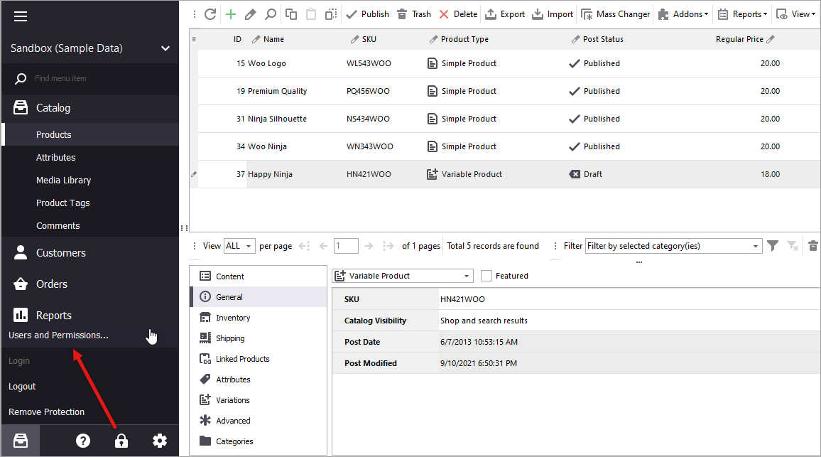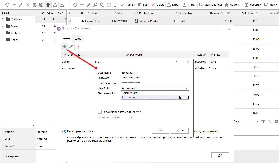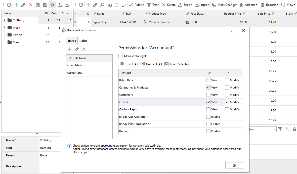 Store Manager possesses convenient Access Management functionality falling back upon which you can create accounts, determine WooCommerce user roles, ensuring fined grained access control in this way.